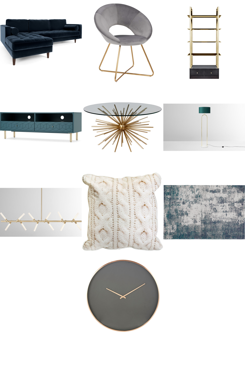 Hedra TV Stand, Brass and Teal (H47 x W134 x...